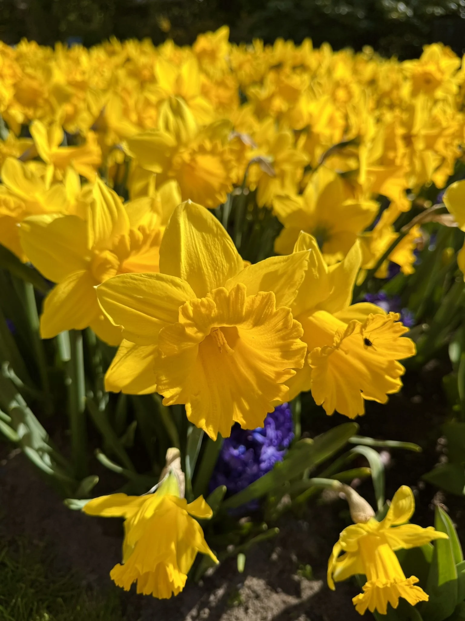 · From early April to early May, blooms include larger tulips, daffodils, muscari, fritillaries, and late-blooming hyacinths.