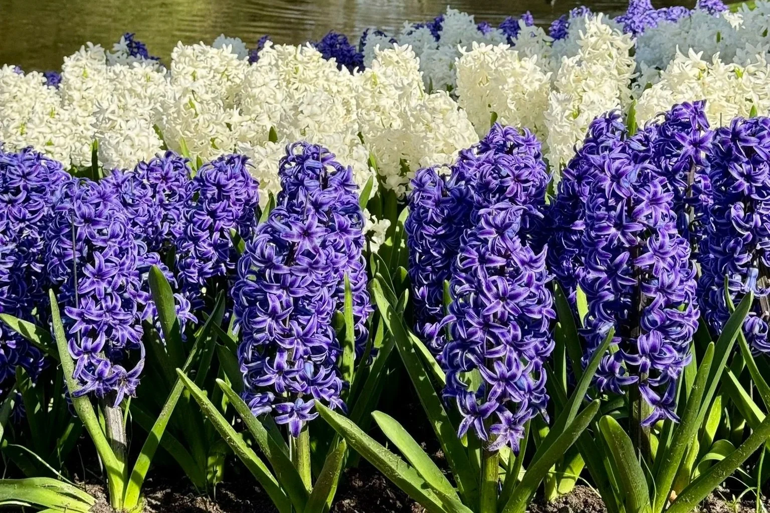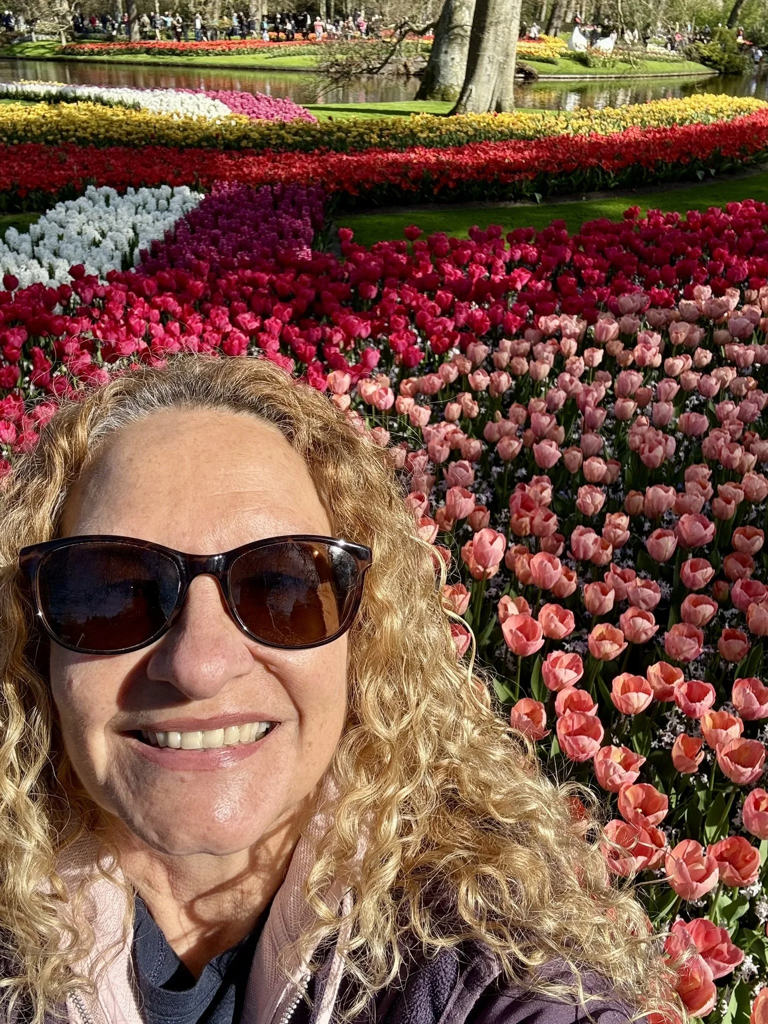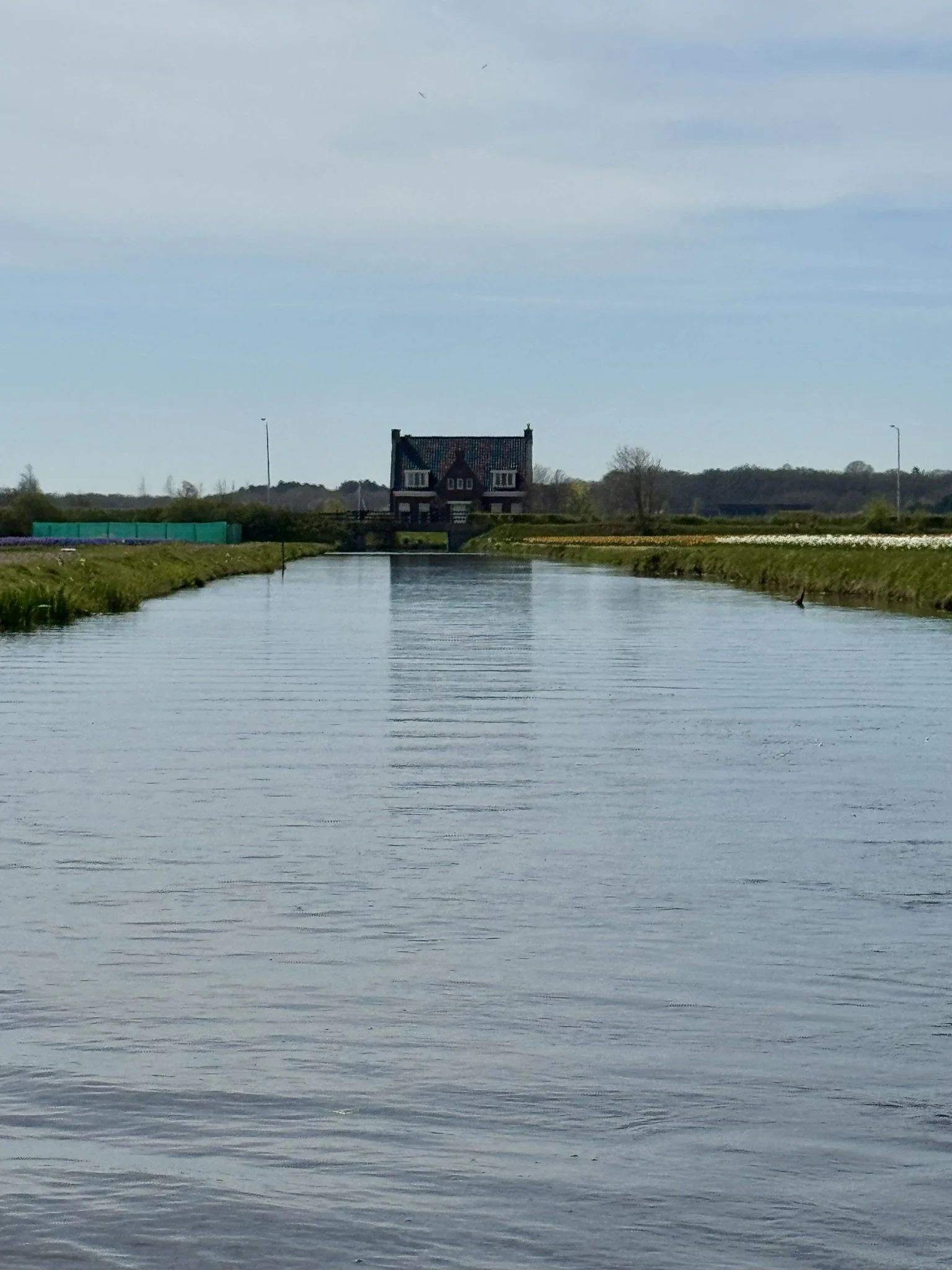During the ride, I discovered that the surrounding fields through which the canal weaves are privately owned. This means that Keukenhof has no control over whether there will be flowers in them or not. Most of the flowers I saw were hyacinths (very fragrant), and apparently, many were expected to be cut the following day.